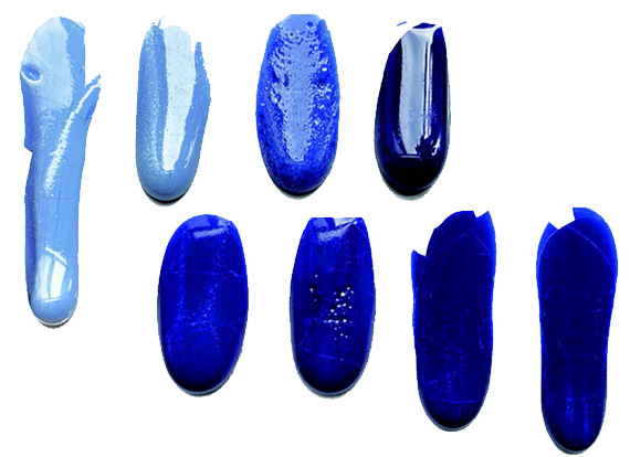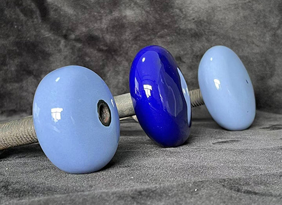 瓷釉主要由石英、長石粉、硅酸鋯、二氧化錫、碳酸鈉、碳酸鉀、碳酸鋰、碳酸鍶,氧化鐵、冰晶、純堿等組成,通過加熱形成SiO2、Al2O3、K2O、Na2O、Li2O、NaSiF6、SrO、ZrO2、CoO、FeO、SnO等氧化物組成的瓷釉熔塊,再通過球磨和磨加物添加,進行瓷釉性能的調(diào)整。